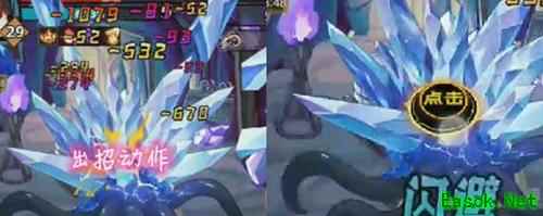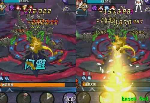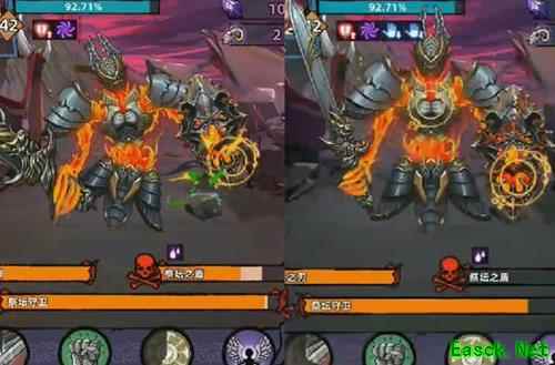 亡灵荒漠中,首波使用1、2技能,BS关卡全开,BS血量耗尽将释放流沙,点击屏幕中央按钮应对。