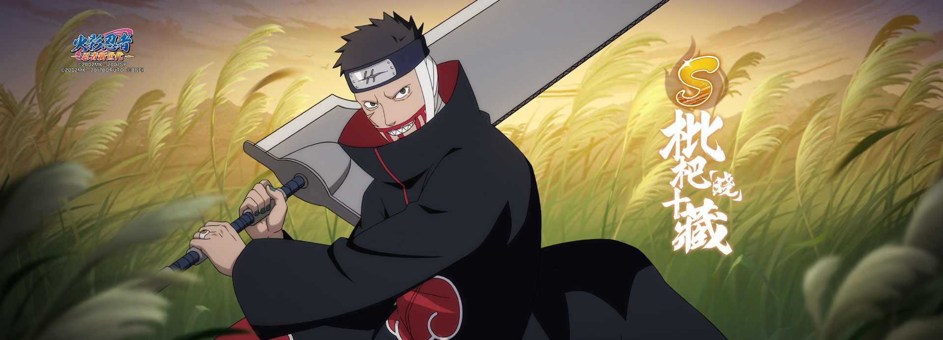 雾隐鬼刃踏血来,晓之南斗破阵开!如今,《火影忍者:忍者新世代》中全新S忍枇杷十藏[晓]登场!以铁血刃术、水遁隐匿与不死之刃横扫战场,用最狂野的斩击,书写雾隐叛忍的狂傲忍道!