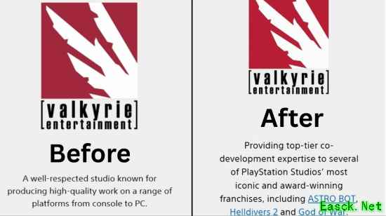 据报道,在PlayStation官网中,多个工作室的介绍已发生变化。例如:Valkyrie Entertainment不再提及PC平台,而是突出其对主机项目的支持(如《Astro Bot》《绝地潜兵2》《战神》等)