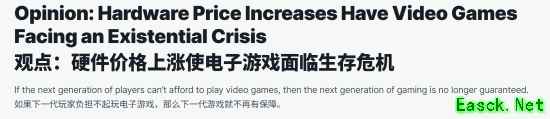 IGN认为,硬件价格的高涨,已经对整个游戏行业产生了威胁。