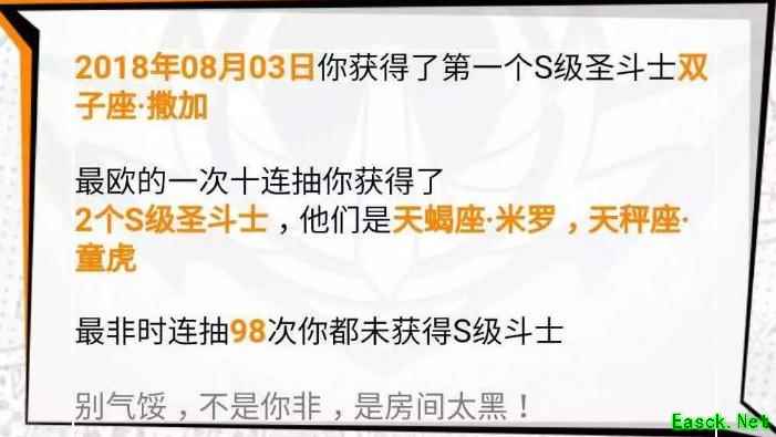 你在圣域度过的每一刻,我都细心珍藏。年末将至,这份专属的小宇宙鉴定报告,我已通过空间传送技能,准时送达你手中,请查收。