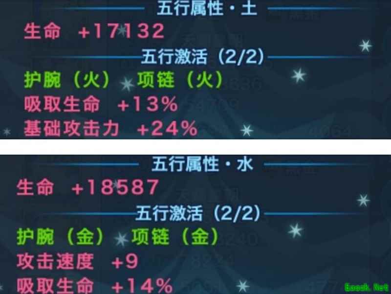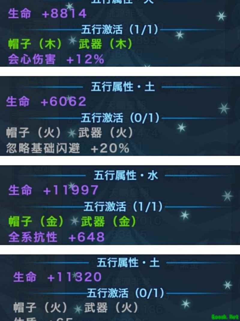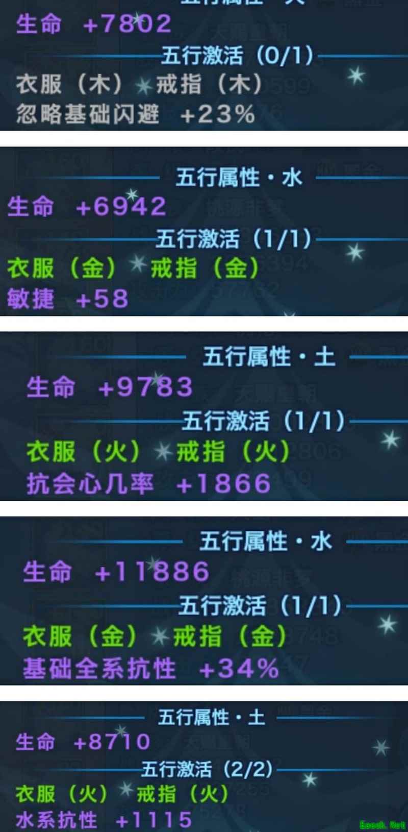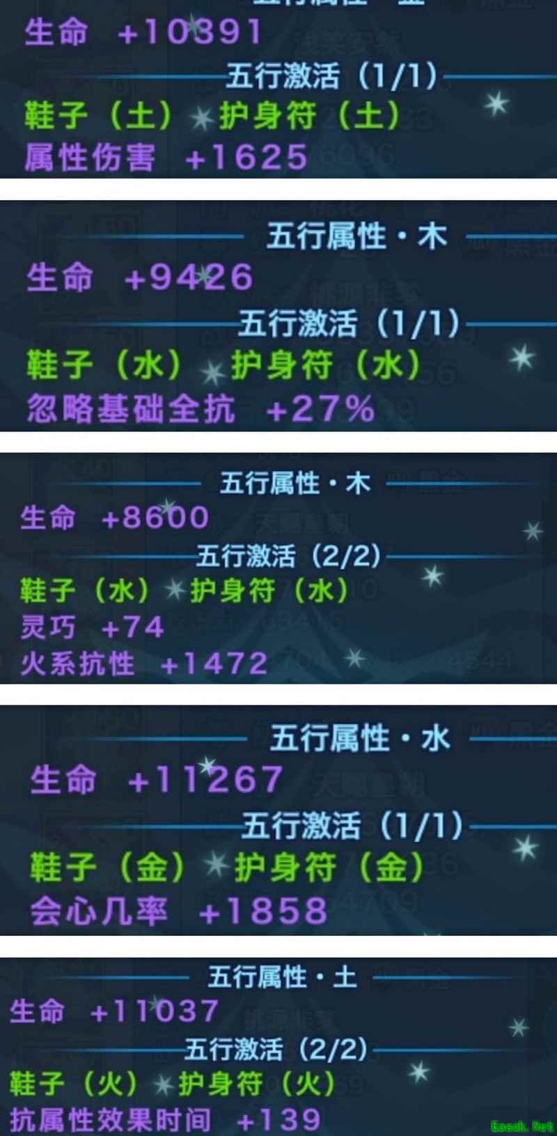 装备的五行属性依据相生规律激活,顺序为金生水、水生木、木生火、火生土、土生金。装备激活遵循从下至上的穿戴顺序:鞋与护身符起始,依次为腰带与玉佩、衣服与戒指、护腕与项链,最后是帽子与武器。例如,当帽子或武器附带金属性时,需在护腕或项链位置装备土属性,方可触发其属性加成效果。