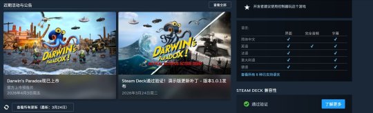 《达尔文悖论》Steam国区定价179元,支持简体中文,同时获得了Steam Deck认证: