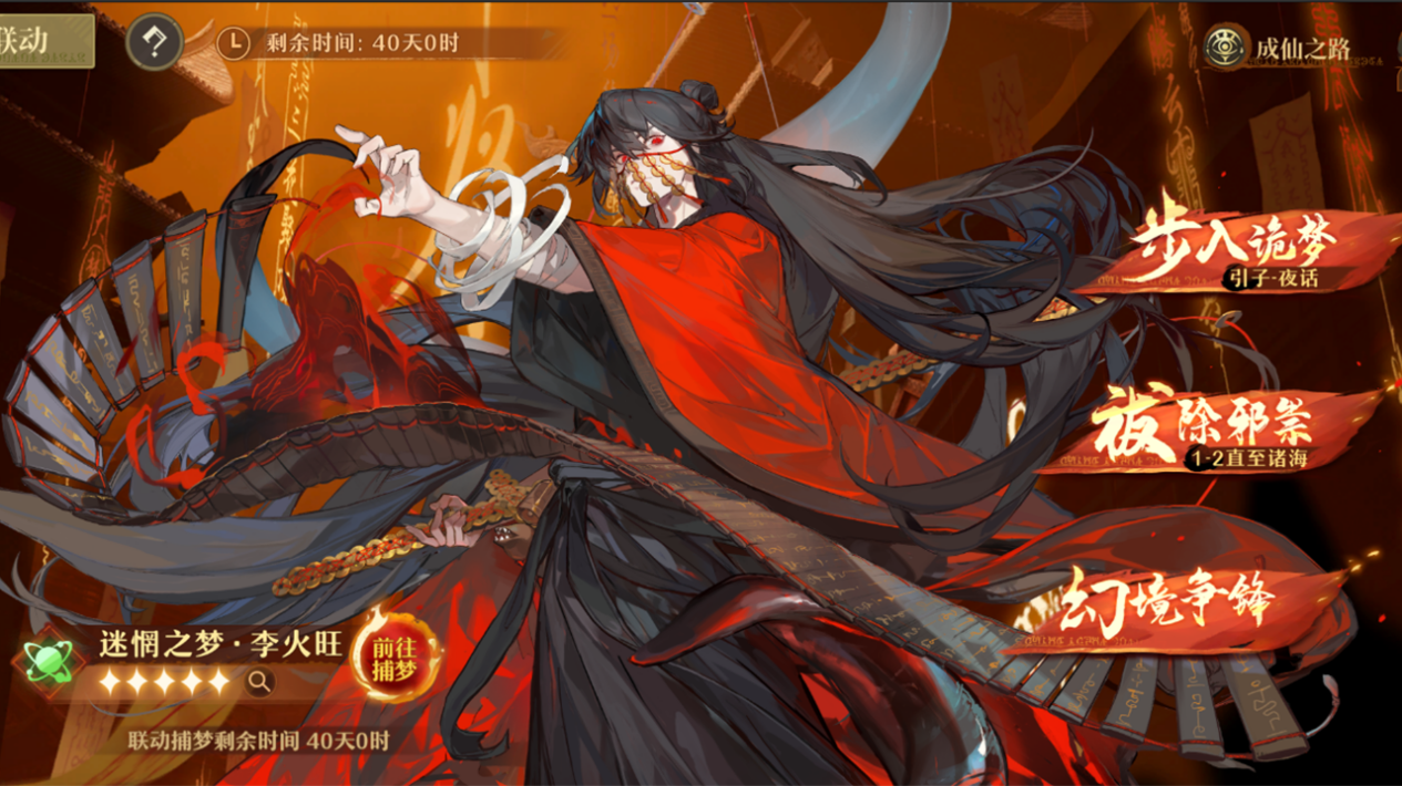在第一赛季「长夜仗剑行」下半阶段,《无尽梦回》正式开启联动五星梦灵【迷惘之梦·李火旺】联动捕梦,以及全新五星梦灵【甘霖之梦·银竹】限时捕梦。