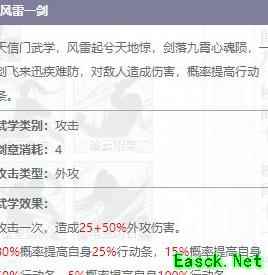 风雷一剑可加速自身行动条,使天信门弟子出手更快,连续进攻如风雷般迅猛,令对手难以招架,陷入被动挨打的境地。