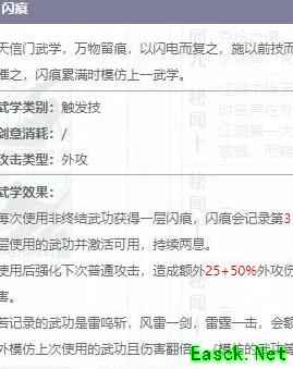 闪痕是天信门顶尖武学,弟子以此作为晋升标准。掌握此技者身法迅捷灵敏,招式如电光石火,能在防守中寻机反击,灵活转换攻守态势,令对手防不胜防,难以招架。