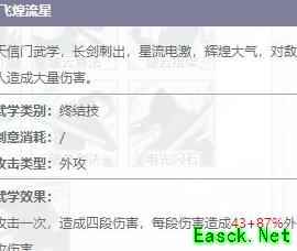 飞煌流星威力中等,攻击次数较少,属常规终结技,但其闪痕效果无法被复制。