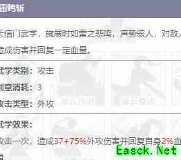 雷鸣斩能恢复使用者气血,使天信门弟子在战斗中更难被击倒。
