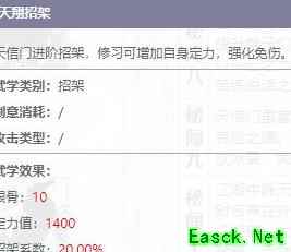 修炼天翔招架可提升根骨属性,根骨随等级与招架系数增长,招架时按比例获得减伤效果。