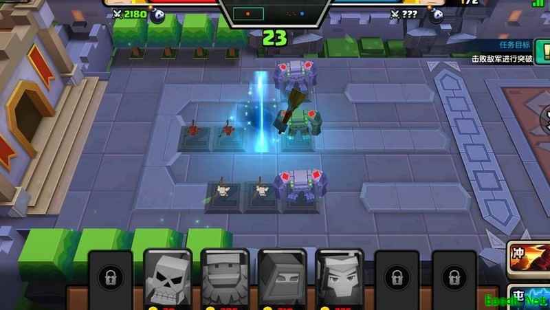 所示,骷髅弓箭手的位置可灵活调整,也可减少一个山岭或替换其他单位。开局必须迅速冲锋,此战术具有一定随机性。曾尝试两三次,虽能消灭敌军,但常在下一波敌人到来前仅剩五秒时间。