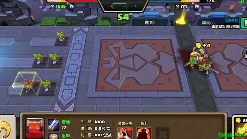 所示,先派前排食尸鬼引开吼叫怪物,后排部队留守家中减速,出门后遭遇剑客立即使用水遁,趁机用小锤攻击敌人,若运气好,会有几名弓箭手顺势跟进支援。