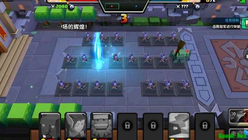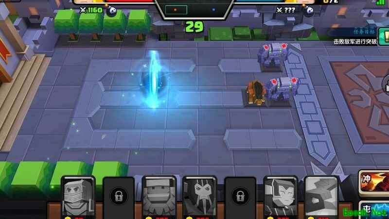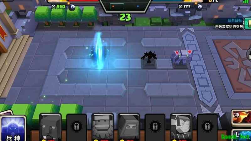 所示,本关旨在训练争分夺秒的意识。后续多个关卡均强调时间把控,在与玩家对战时,若快到传送门且敌方单位已清空,仅剩数秒便刷新下一批兵,此时使用冲锋部队可迅速通过传送门进攻战神。