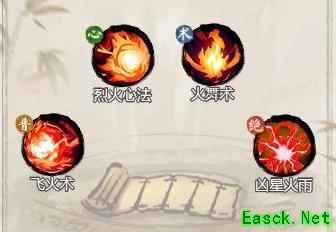 技能组合推荐:飞火术、烈火心法、焚炎咒与凶星火雨。普通攻击无需搭配豪飞火术,因豪火术为中距离攻击,易触发范围伤害,而烈火心法可使普攻附带灼烧效果。