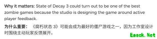 Tech4Gamers表示,Undead Labs工作室主动围绕玩家反馈优化游戏,还提前规划了长期支持策略,加上游戏融合了前两作的精华内容,且开发团队规模都是初代的6倍,这些都是这款游戏有望成功的关键所在。