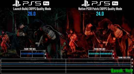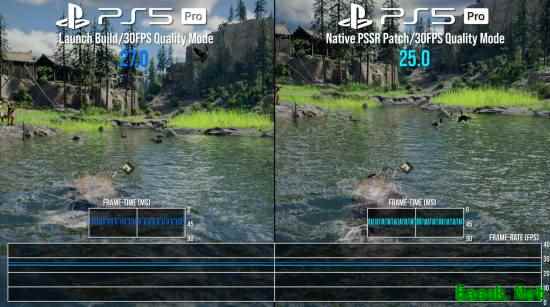 不过这次升级也并非没有代价。在开启PSSR原生抗锯齿后,会对性能会产生一定影响,帧率大约下降2帧,帧时间增加约3ms。虽然多数场景下30帧上限能掩盖额外负载,但在部分复杂场景中,帧率会出现低于30帧的情况,体验有所波动。此外,新增的锐化效果力度较强,部分场景甚至显得有些过度,如果能加入可调选项会更加友好。
