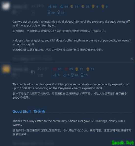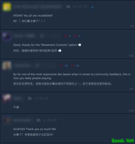在Steam更新公告的评论区中,玩家们纷纷表达称赞,并进一步提出目前待优化的问题: