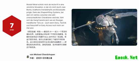 由独立工作室SCREEN JUICE打造,育碧发行的动作类砍杀游戏《异变金属》近日宣布开展抢先体验,而IGN德国已给出了评分。