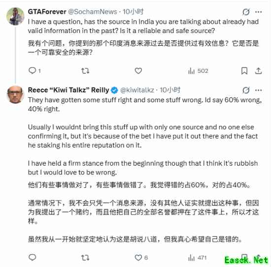 并且Kiwitalkz表示其实自己也并不相信他说的话,但仍真心希望自己是错的,毕竟谁不想看到R星真发新片呢?