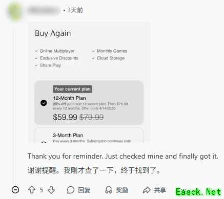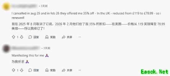 也有玩家表示收到更高折扣,例如在订阅过期数月后获得35%的优惠。这类折扣有时还与购买渠道有关,例如通过手机应用续费而非主机商店。