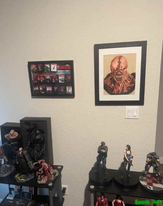 国外一位《生化危机》忠实粉丝在社交平台分享了自己的全套收藏,引来大量玩家围观点赞。这位玩家的藏品摆放整齐,整体布局十分精致,从游戏手办到主题周边一应俱全,完整覆盖了系列经典角色与道具。