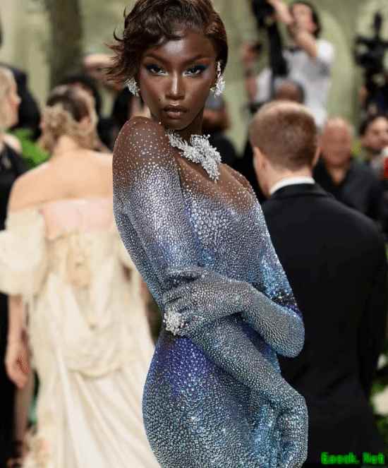 Anok Yai是一位出生于埃及开罗的南苏丹裔美国超模,她的人生经历堪称传奇:曾是难民之女,在美国靠父母辛勤工作维持生计,自己则一边求学一边照顾弟妹,并考入普利茅斯州立大学生物化学系。2017年,她因一张音乐节照片意外走红网络,随后被模特公司发掘,迅速登上Prada秀场并成为其独家模特,成为继Naomi Campbell之后第二位为Prada开秀的黑人模特。