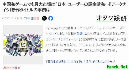 真爱拉电线!《终末地》日本市场收入超中国:全球第一