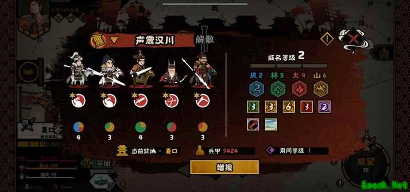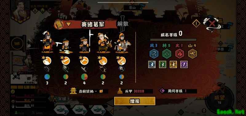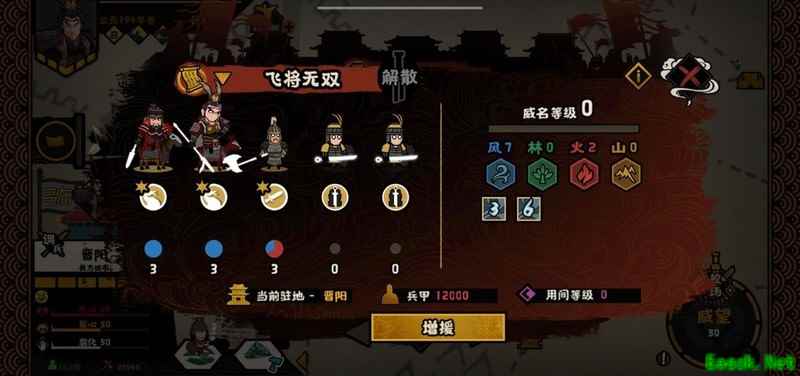 阵容搭配:弓兵、步兵、枪兵、骑兵、重型及弓骑裨将中任选五位组合即可。