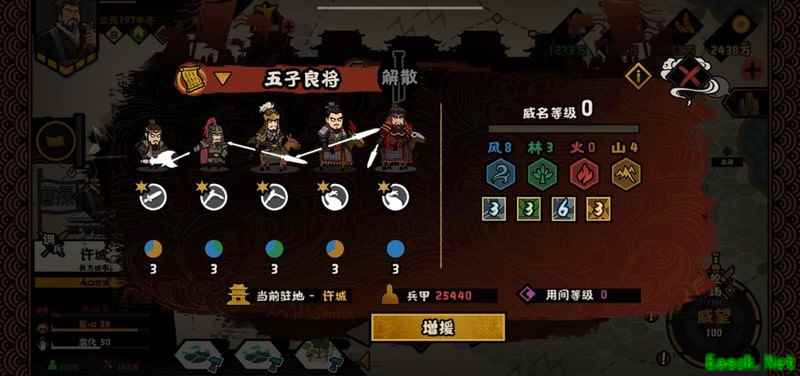 游戏中部分武将可以组合成具有特殊称号的军团,如五虎将、五子良将等。虽然没有额外属性加成,但这也算是一个有趣的隐藏设定。