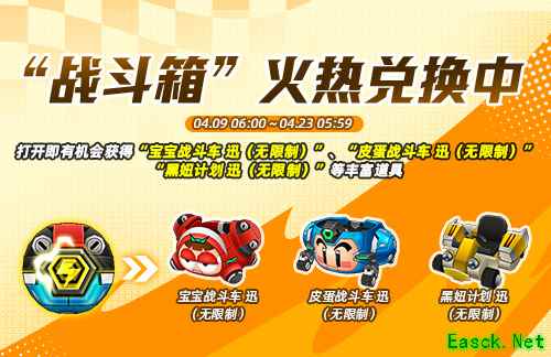 春色满园,生机盎然,《跑跑卡丁车》“战斗箱”同步登场!打开“战斗箱”即有机会获得“宝宝战斗车 迅(无限制)”(*该车无法装备尾灯)、“皮蛋战斗车 迅(无限制)”、“黑妞计划 迅(无限制)”、“宝宝战斗气球(30个)”等丰富道具~!