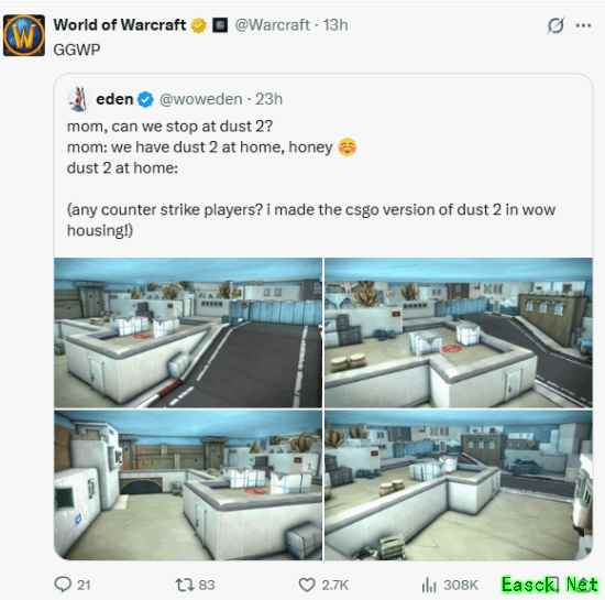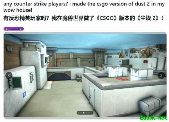 《魔兽世界》玩家在自家房子里复刻了《CS》Dust 2,暴雪官方亲自下场玩梗。你觉得下一个被搬进《魔兽》的FPS地图会是什么?
