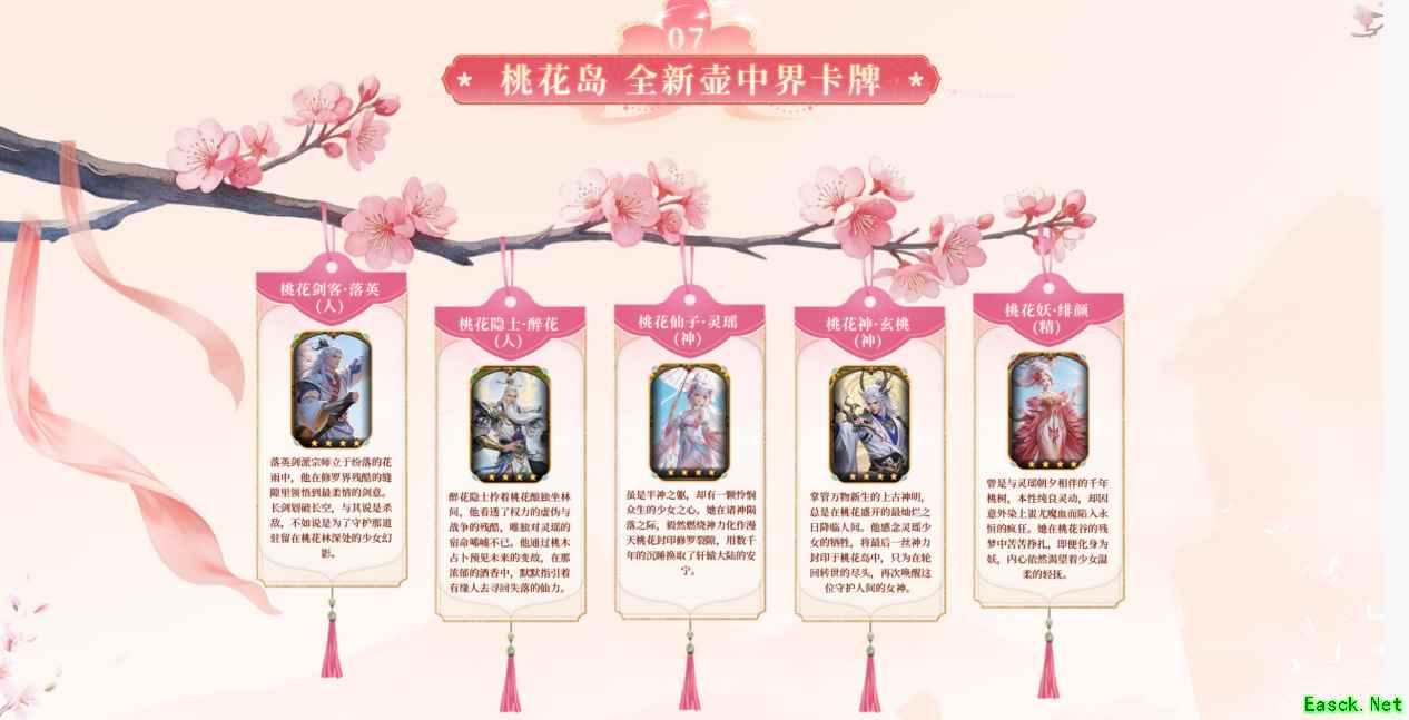 五张4星全新壶中界卡牌自桃花岛而来,立于花雨中的落英剑派宗师,独坐林间的醉花隐士,掌管万物新生的上古神明,化身为妖的千年桃树,皆与以身救世的半神灵瑶有着千丝万缕的联系。金庸笔下的江湖存于书中,而轩辕的传奇故事,正在卡牌之中。