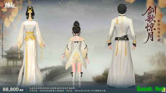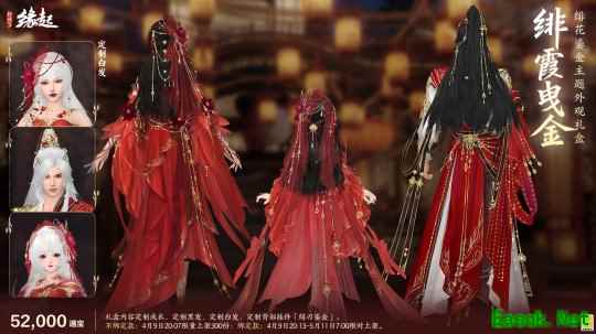 礼盒包含定制成衣、定制黑发、定制白发、定制背部挂件「绯刃鎏金」。
