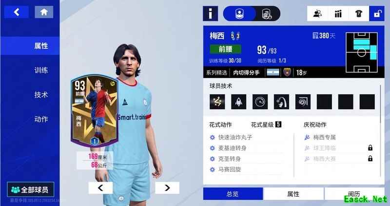 次日签到,可领取红蓝军团18岁内切射手梅西,擅长精准盘带,禁区突破迅捷如风。