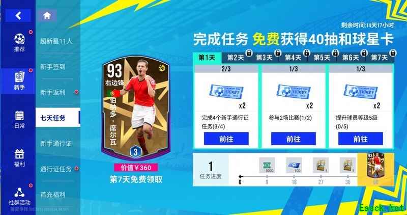 签到第七天,可解锁19岁全能前锋哈里·凯恩,助力球队进攻火力升级!