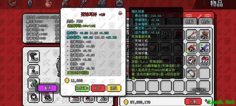 暴击套选择三到四个与暴击伤害属性相近的即可。死神套需强化至10级,吸血鬼无法强化,转生后可通过刷钱购买装备分解强化。建议刷史莱姆获取碧游,利用血炎咒清场,设置角色列表后反复进入游戏刷取。