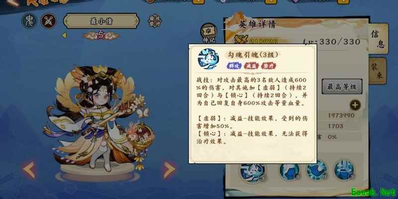 聂小倩技能锁定高攻敌人,附加虚弱增伤与锁心禁疗,令对手无法回血,堪称绝杀组合。