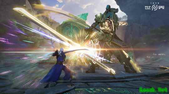 在《王者荣耀世界》中存在独特的“共鸣”战斗系统,玩家能够同时模拟两位英雄的能力进行战斗。例如,伽罗和铠的「强攻」加「对抗」组合就延续了各自在王者发育路与对抗路的特色。伽罗的战斗延续了中远程输出的风格,能够在安全区域对敌人进行打击;铠则担起了承伤的任务,配合「不灭魔躯」进行近距离输出。