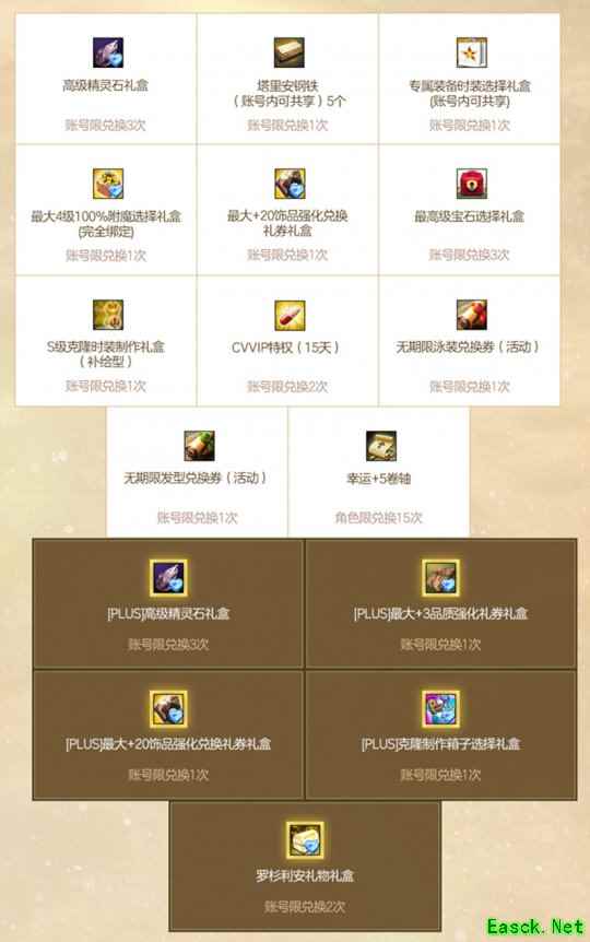 在2026PLUS黄金时间之中,英雄们不仅可以享受到周末与节假日的HOTTIME福利时刻,完成任务获得黄金时间礼券还可兑换到最大+15武器强化兑换礼券礼盒、瓦德内结晶礼盒等高价值提升材料,开启礼盒后获得的额外金币还能兑换到专属装备时装选择礼盒、CVVIP、S级克隆时装制作礼盒(补给型)等稀有高价值道具及外观奖励。