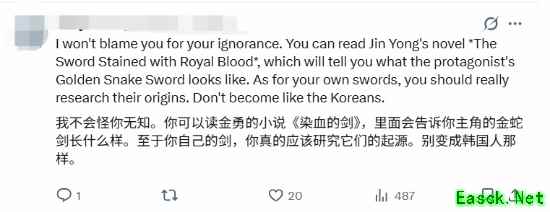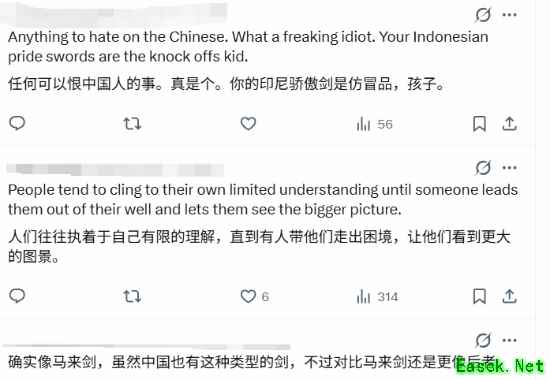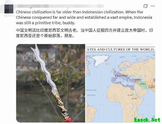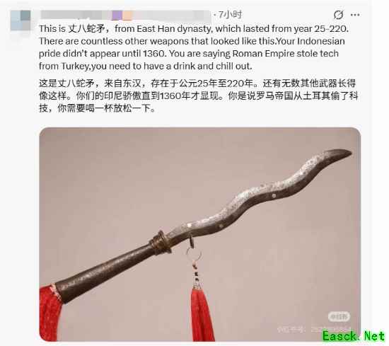 其他玩家纷纷坐不住了,表示中国自古以来就有这种造型的武器,还有小说中的金蛇剑、丈八蛇矛等,中国建立帝国时印尼还是原始部落。