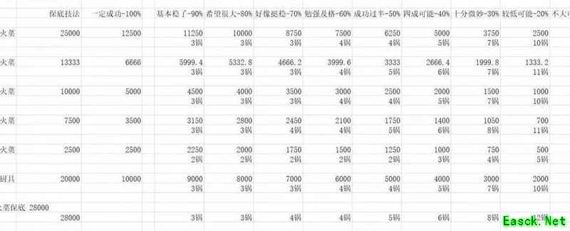 五火菜技法总保底按28000计算,不得使用25000作为基准数值。