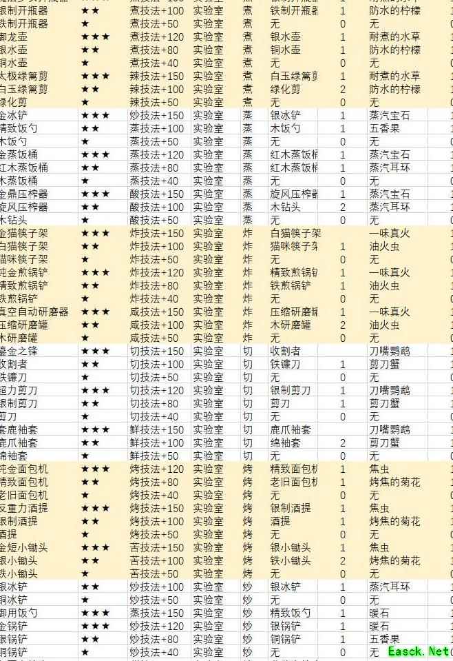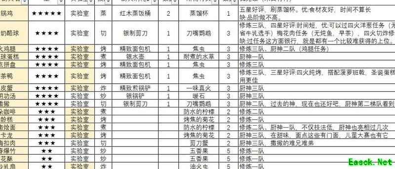 漫漫建议:为节省资源,实验室研发时厨师可使用新手池的三火厨具,无需动用稀有厨具,以免造成浪费。