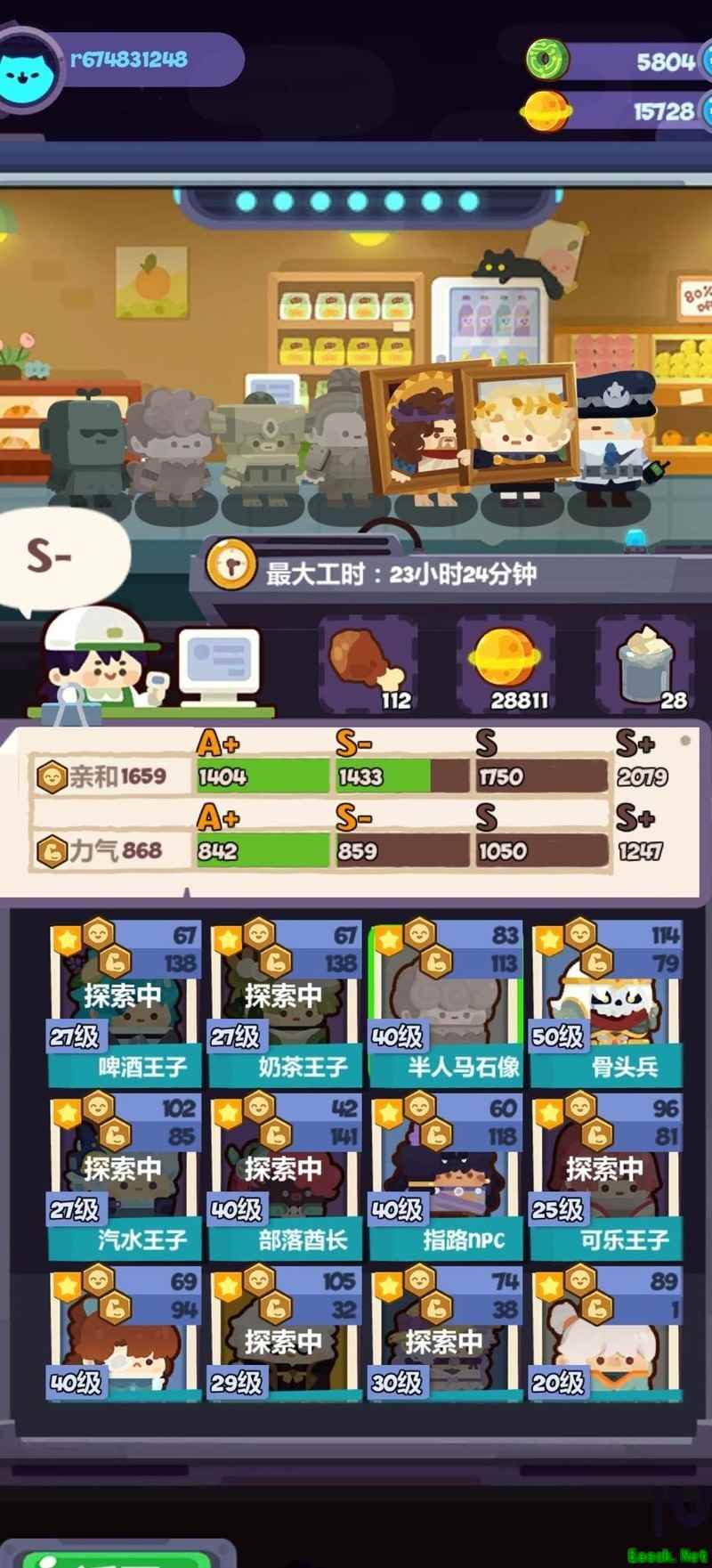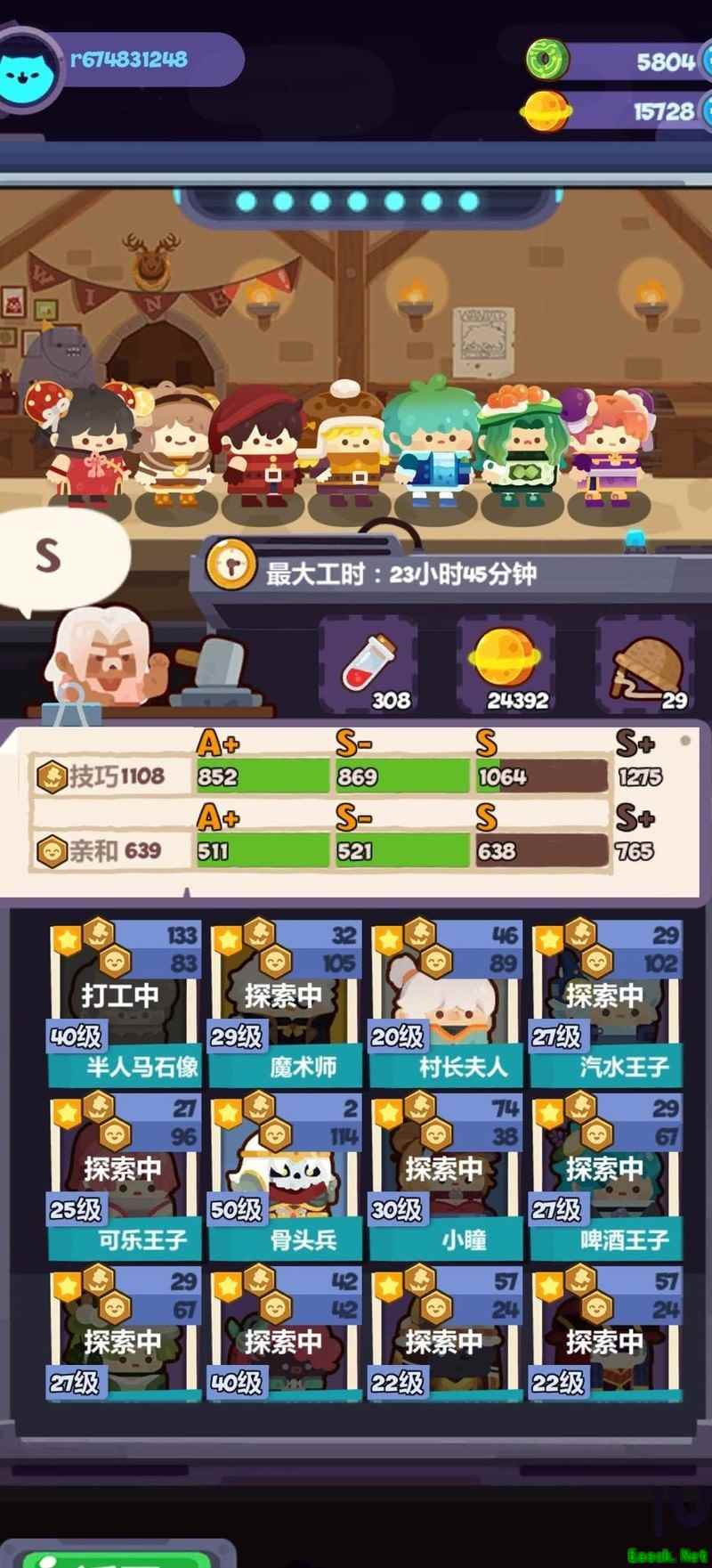 道具店组合选用糖豆人搭配破产姐妹,移除小绿和小橙两个糖豆人。当前已升级装备至S+级,收益提升有限,后续再做调整。