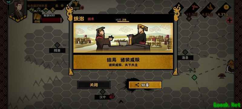 我选择姜子牙因他两星且无三技能,搭配郦食其出战。进攻时优先拜访楚国或齐国,通过说国使其臣服,再以拜访提升好感,与另一国结盟(齐国初始好感高更易结盟)。韩国通常一击即降,如此仅需亲征三国。后期联合盟友展开谈判,选择荣华富贵结局可快速通关。熟练操作后,多数对局十分钟内即可完成,唯遇六国围攻时节奏稍缓。