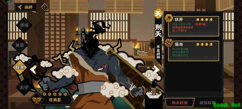 刑天为必备武将,其一技能可造成高额伤害,每次释放提升杨戬好感2点但降低军心,二技能能进一步扩大战场优势。