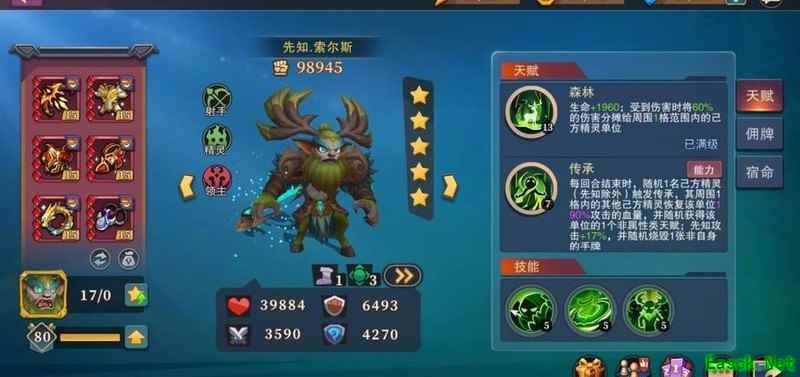 索尔斯是精灵队核心,与射手配合有限,实战中兼顾珈蓝与起源树,属稀有金色英雄,星级越高收益越大。