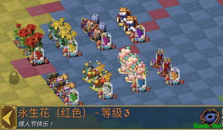那么永生花如何获取?只要玩家完成一次情人节系列活动,在商店的最后一页就会解锁多彩永生花和永生花礼物盒。其中,多彩永生花是单独的广告建筑,而购买永生花礼物盒(每个售价588金叶)可随机获得一个1级永生花。虽然价格较高,但一旦成功制作出8种2级永生花,便可通过每天3次免费点击和3次广告观看,持续获得情人节奇迹所需的1-3级材料,长期来看非常划算。