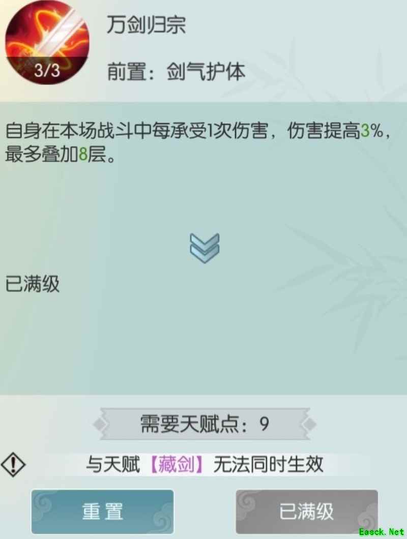 万剑归宗的满级效果为每次受到伤害提升3%伤害,最多叠加8层。顾名思义,该技能适合群战场景,能在多敌人战斗中迅速叠满增益,对多输出目标同样表现优异。需注意,仅被动承受的直接伤害可触发叠加,反伤类伤害不计入层数累积。