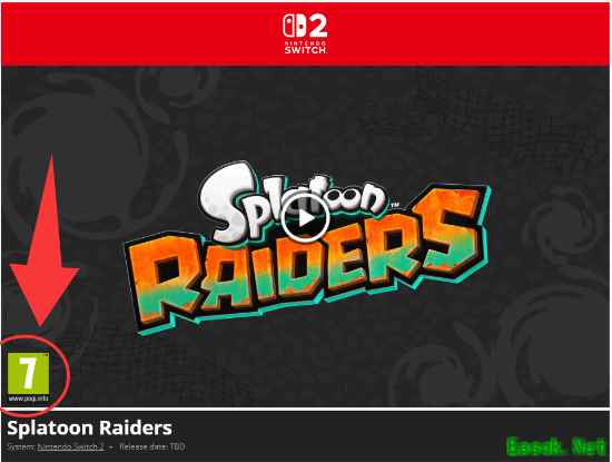 Nintendo 近日更新了欧服 eShop 上《斯普拉遁:涂击队》的页面,为这款 Switch 2 独占新作添加了“PEGI 7”年龄分级。此前该页面一直显示为“TBD”(待定),这一变化最早由玩家在 X 上发现,并通过 Wayback Machine 验证,确认是近期更新。