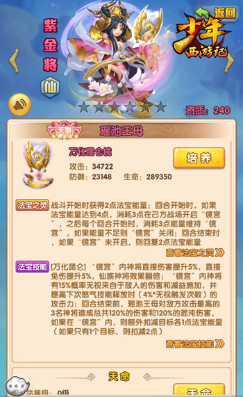 全新紫金神将金蝉子、瑶池王母和白骨夫人将于12月12日正式上线,全新世界观“宿命轮回”重磅开启:金蝉子十世轮回后在青丘觉醒,决定探寻仙魔大战的真相,继而引出了瑶池王母与白骨夫人之间的宿命纠葛。在新资料片中,他们千百年来的恩怨情仇将走向何方?尘封的三界传说终于开启。