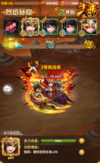除了全新紫金神将登场外,跨服PVP闯关玩法“烈焰秘窟·火焰山”也在今日正式开启。在该玩法中,秘境将根据参与玩家的战力,随机跨服匹配5个不同战力的对手进行切磋。玩家每击败一个对手,自身都可以获得百分比的属性加成。